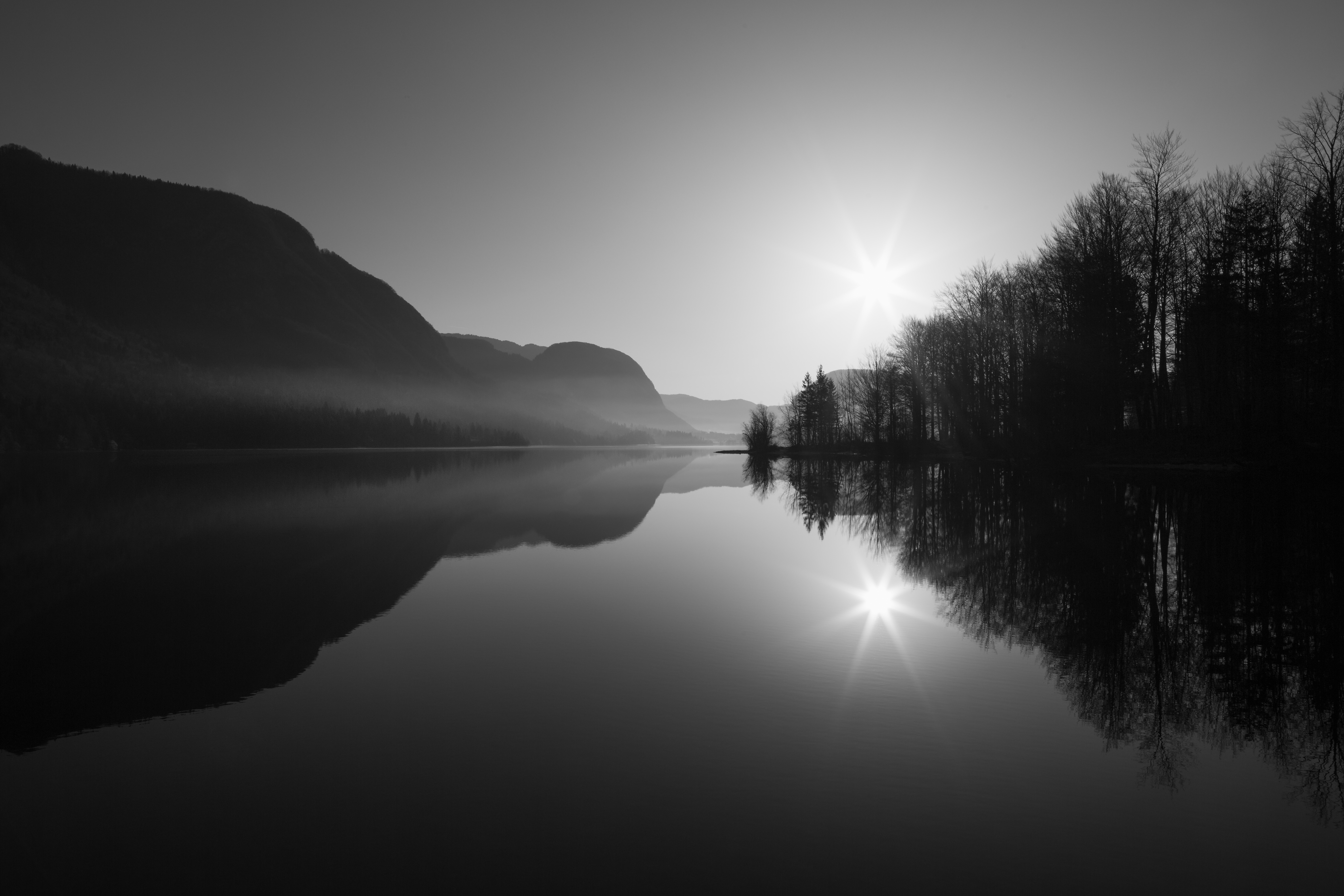 Quick alternate take of the colour original. I liked the colour of the dawn light catching in the shroud of mist too much not to lead with the colour, but the black and white is perhaps truer to the scene.