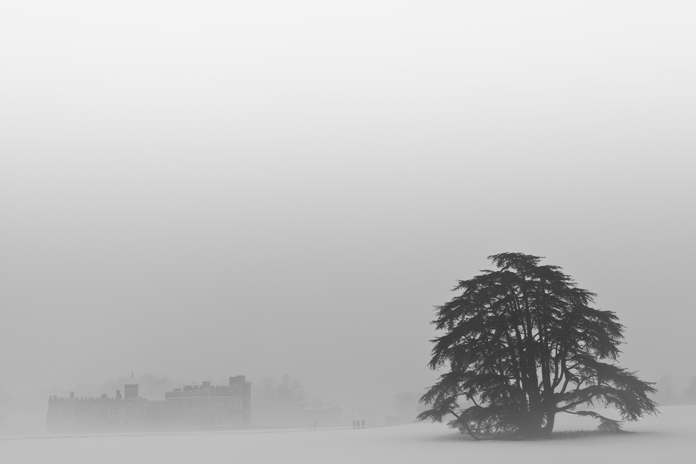 Snow, freezing fog and huddled forms at Leeds Castle today. Not the classic view, but one I like nonetheless! Nice on black.