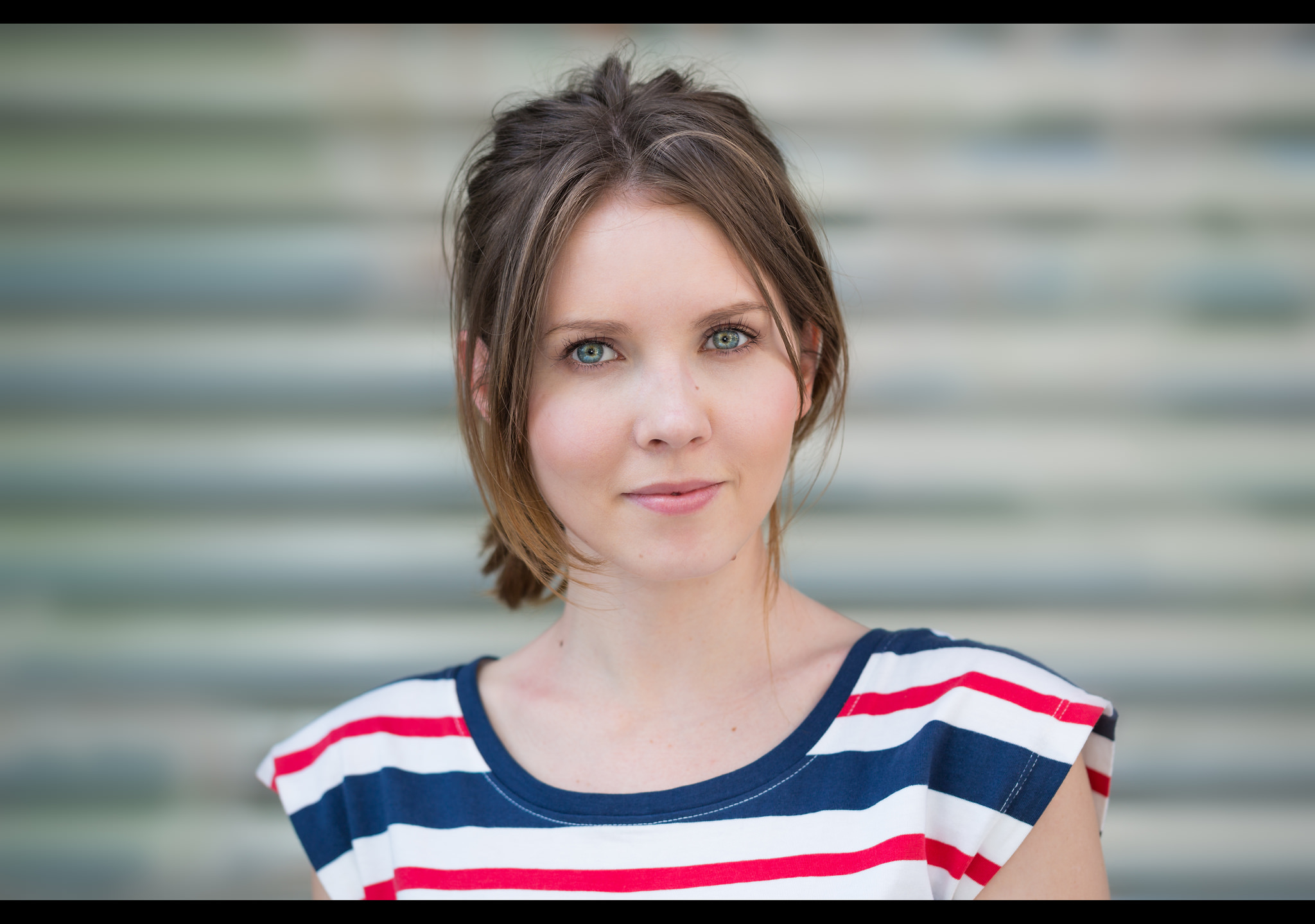 Like death, taxes and the inevitable late opposition equaliser, there comes a time when the 100 Strangers photographer shoots a roller shutter background. With Lena’s superb tricolore striped top, that fateful moment had arrived for me.