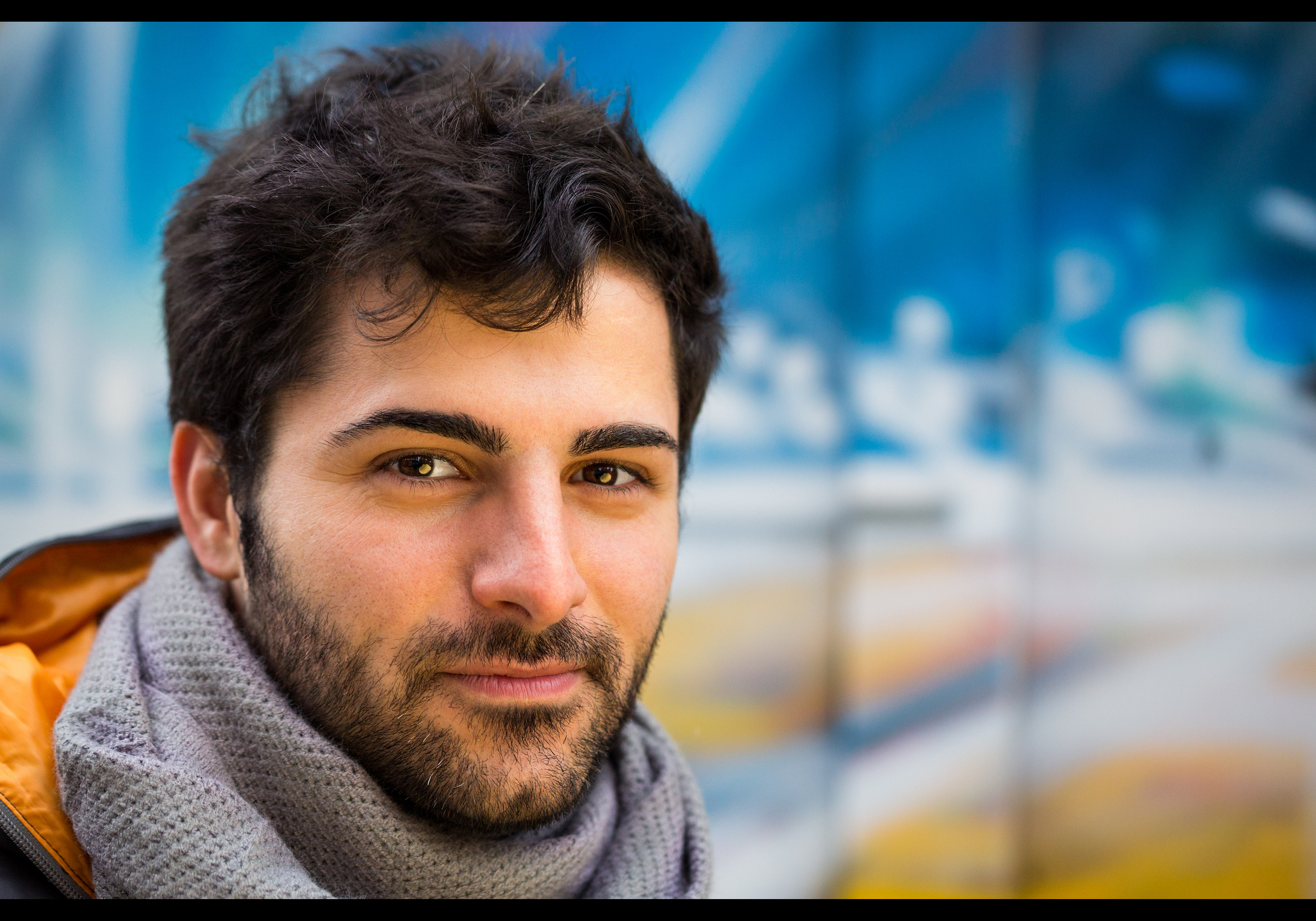 Alex had an incredible Canon 50mm f1.2L, so we started chatting about photography. Alessandra was especially interested in the 100 Strangers Project, and was extremely keen to take part. We stepped back into a side alley with some neat urban art for a backdrop.