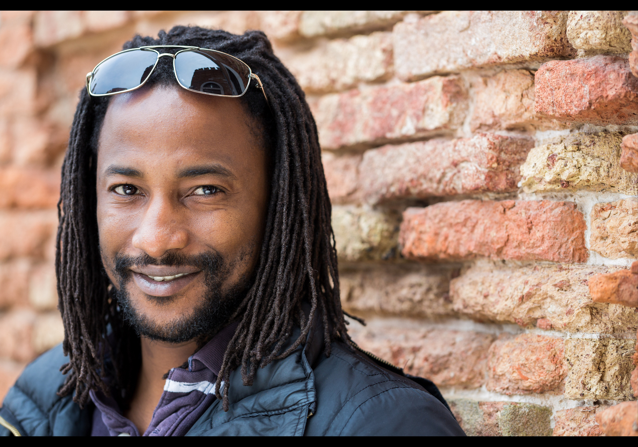 Tempting as it was to shoot Onai with shades deployed, I prefer the connection without them. In this case, shifting then back allowed for a reflected Arsenale tower to come into shot. Onai noted this appropriate, as he’s (also) an Arsenal supporter. As we chatted he referred to the new ground correctly as The Grove, adding further evidence of his quality of character.