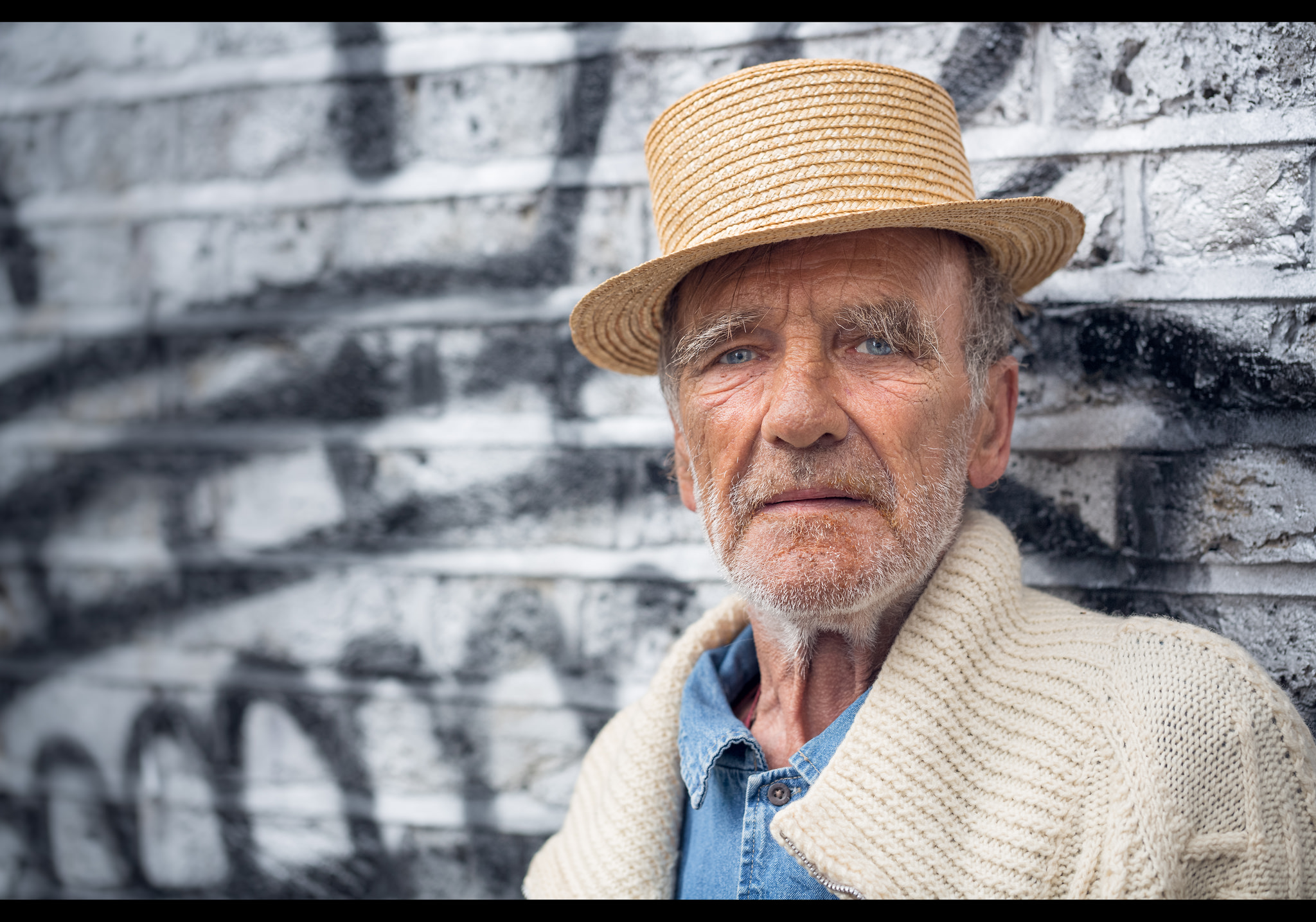 Before I could show him my intended background he settled against this artwork, and it seemed appropriate. The new wave of art against the London brick, and the timeless character of its people together in comfortable juxtaposition.